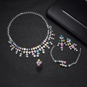 Trendy 4PCS Wedding Jewelry Sets For Women UAE Colorful Cubic Zircon Jewelry Set Bridal Accessories