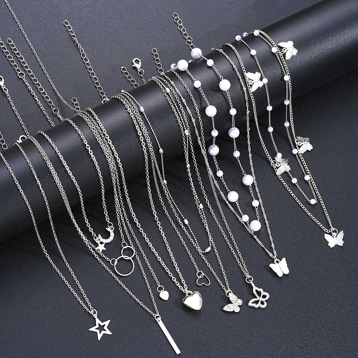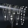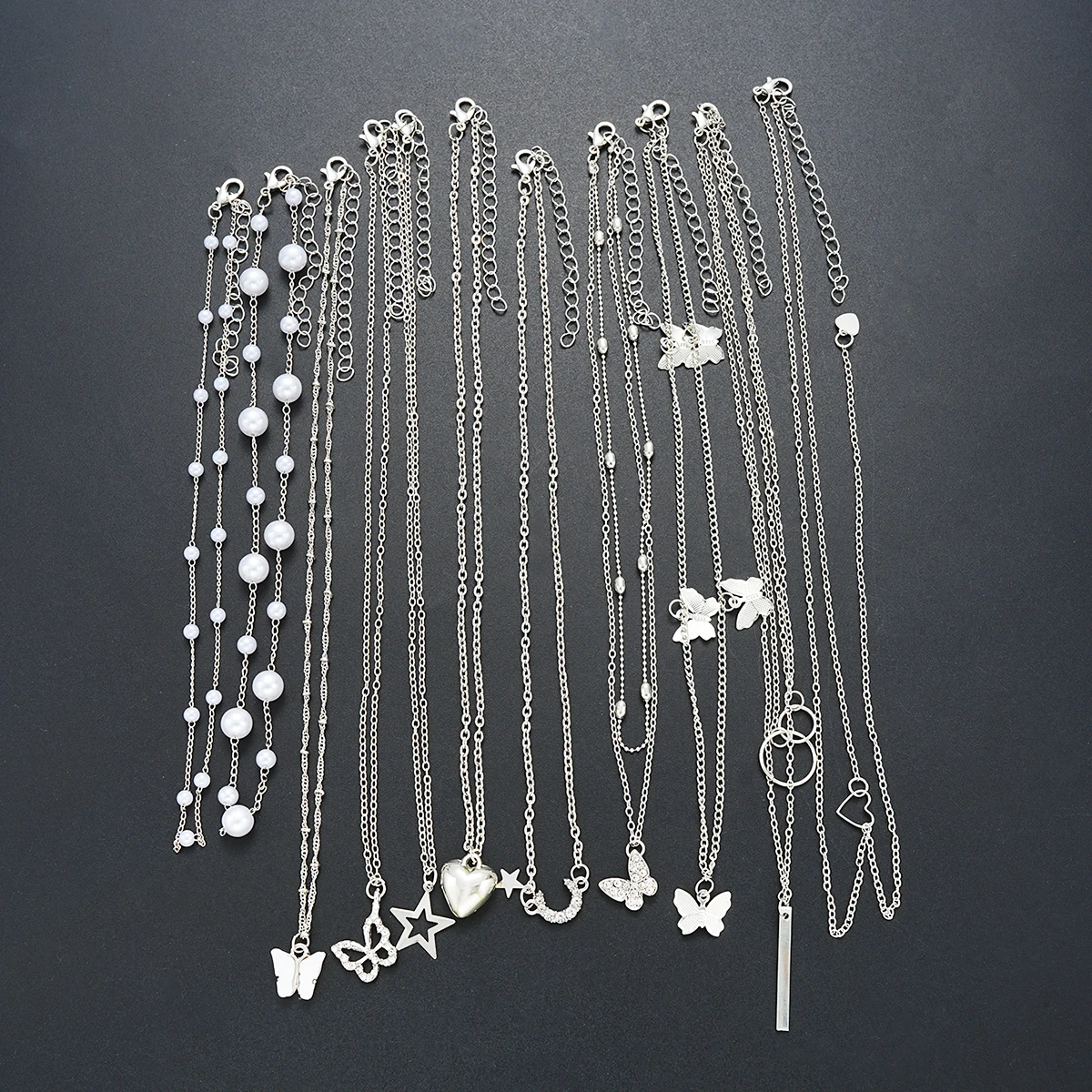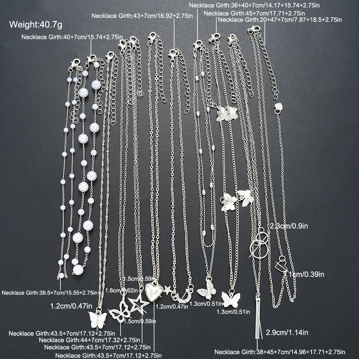 11pcs Simple Heart Butterfly Moon Pendant Necklaces For Women Elegant Silver Color Star Crystal Imitation Pearl Jewelry Set 2025