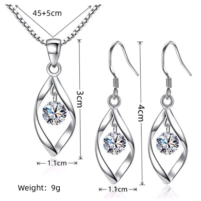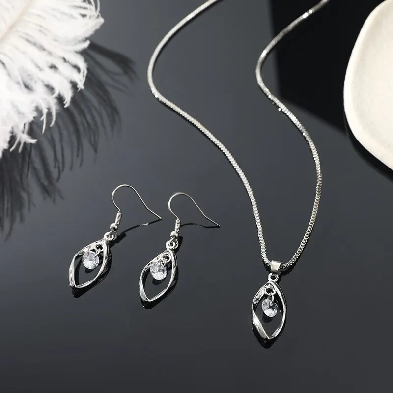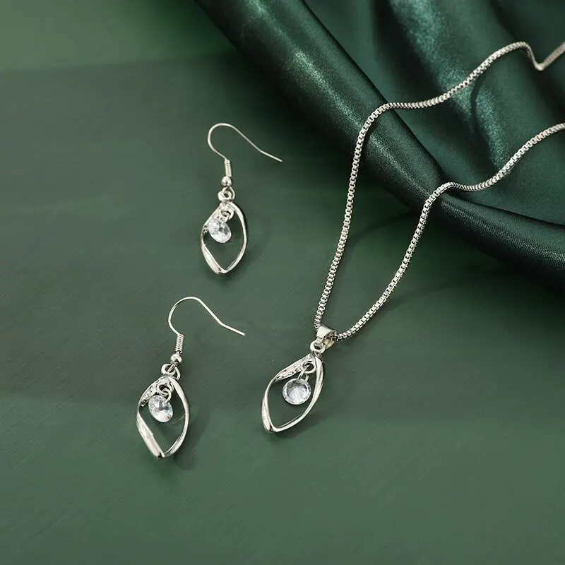 3pcs Necklace Earrings Set Ladies Cold-color Wind Twisted Glass Diamond With Venice Chain Imitation White Gold-color Jewelry