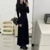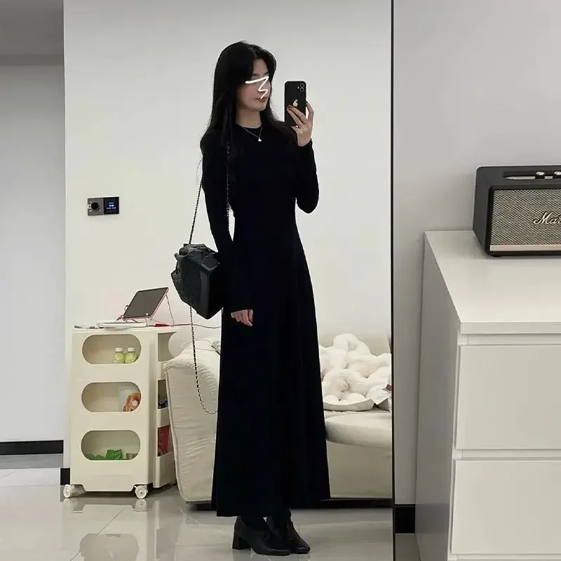 • Long-sleeved Style : With its long-sleeved style, this dress provides warmth during autumn and winter months while maintaining a chic and stylish appearance.