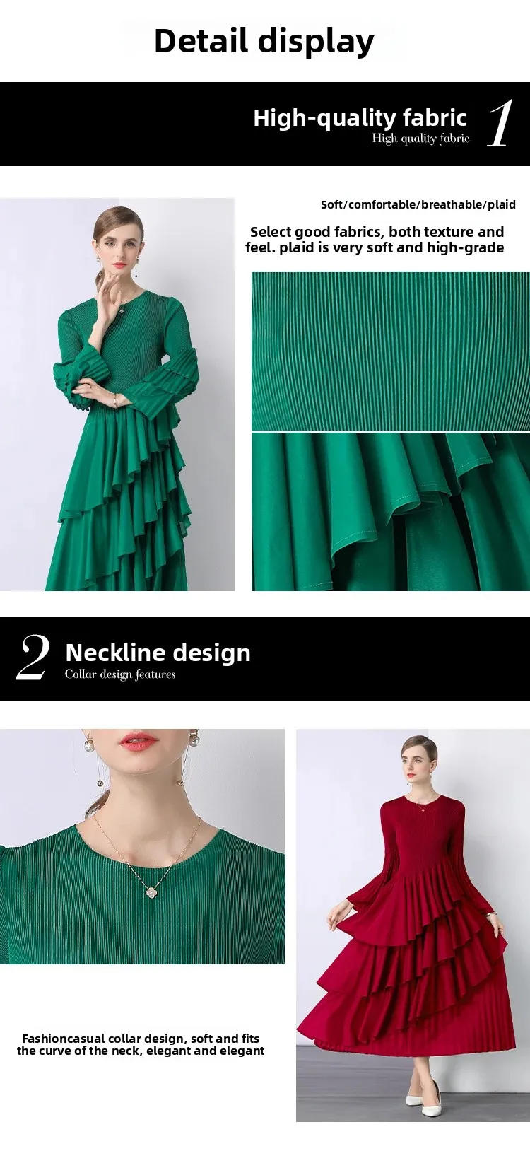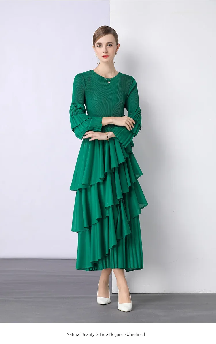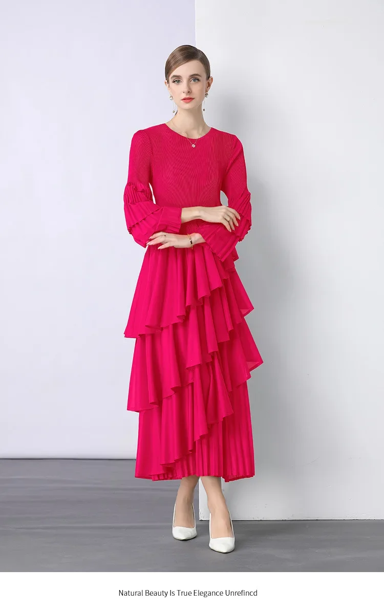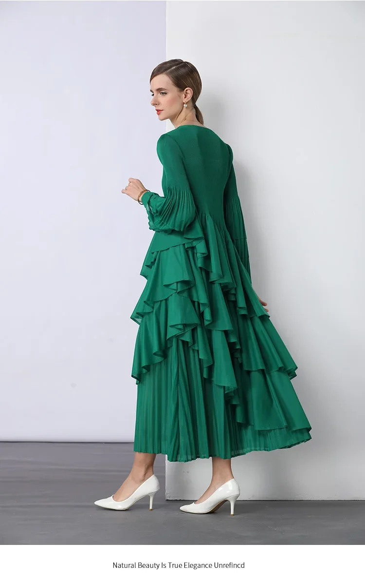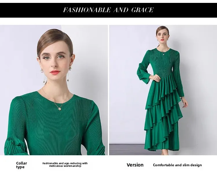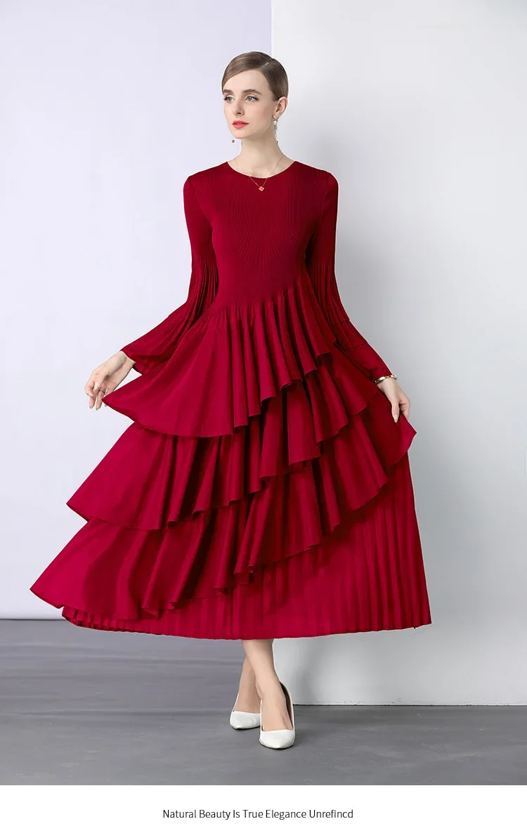 Chiffon Gauze Long Sleeve Empire Waist Dress Draped Skirt Heavy Embellishment Lotus Leaf Edge Light Maturity Style Dress