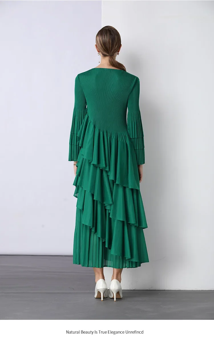 Chiffon Gauze Long Sleeve Empire Waist Dress Draped Skirt Heavy Embellishment Lotus Leaf Edge Light Maturity Style Dress