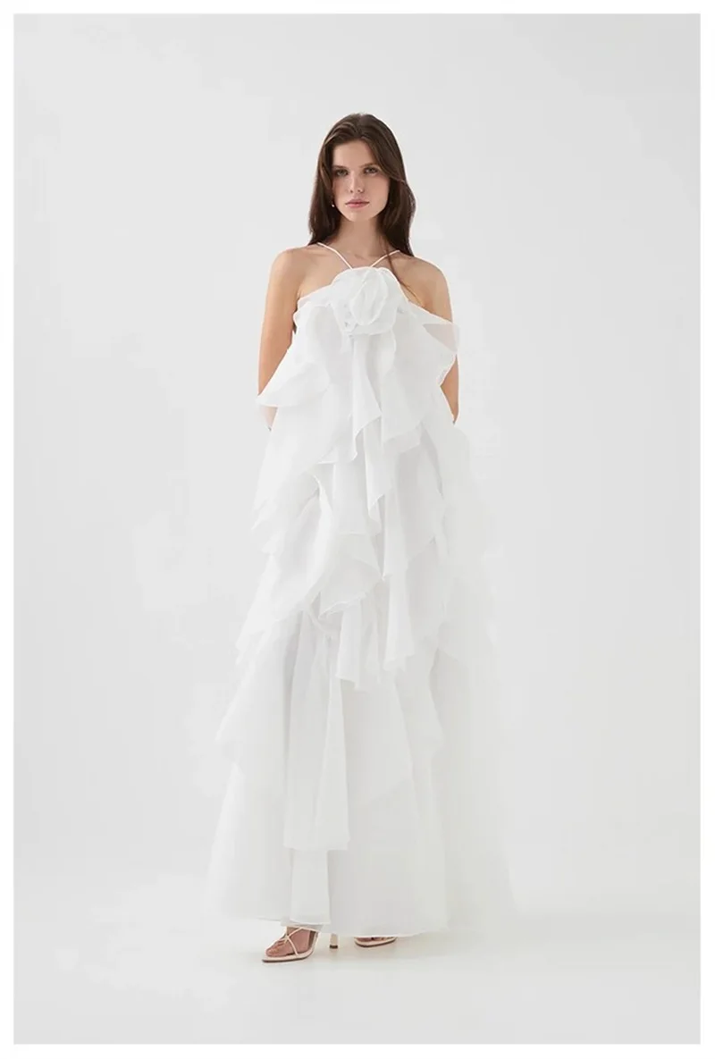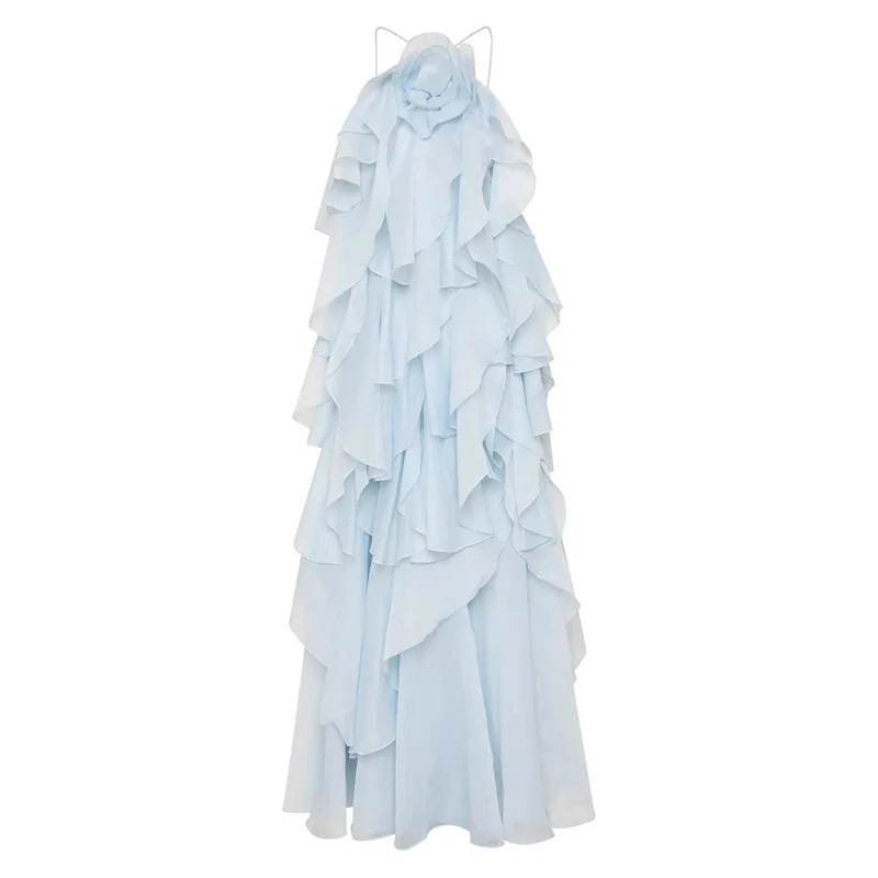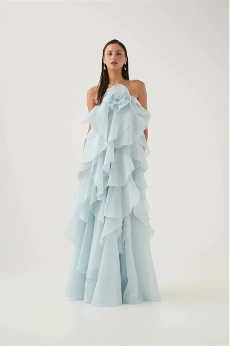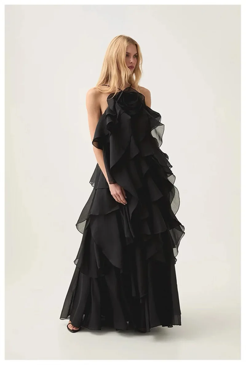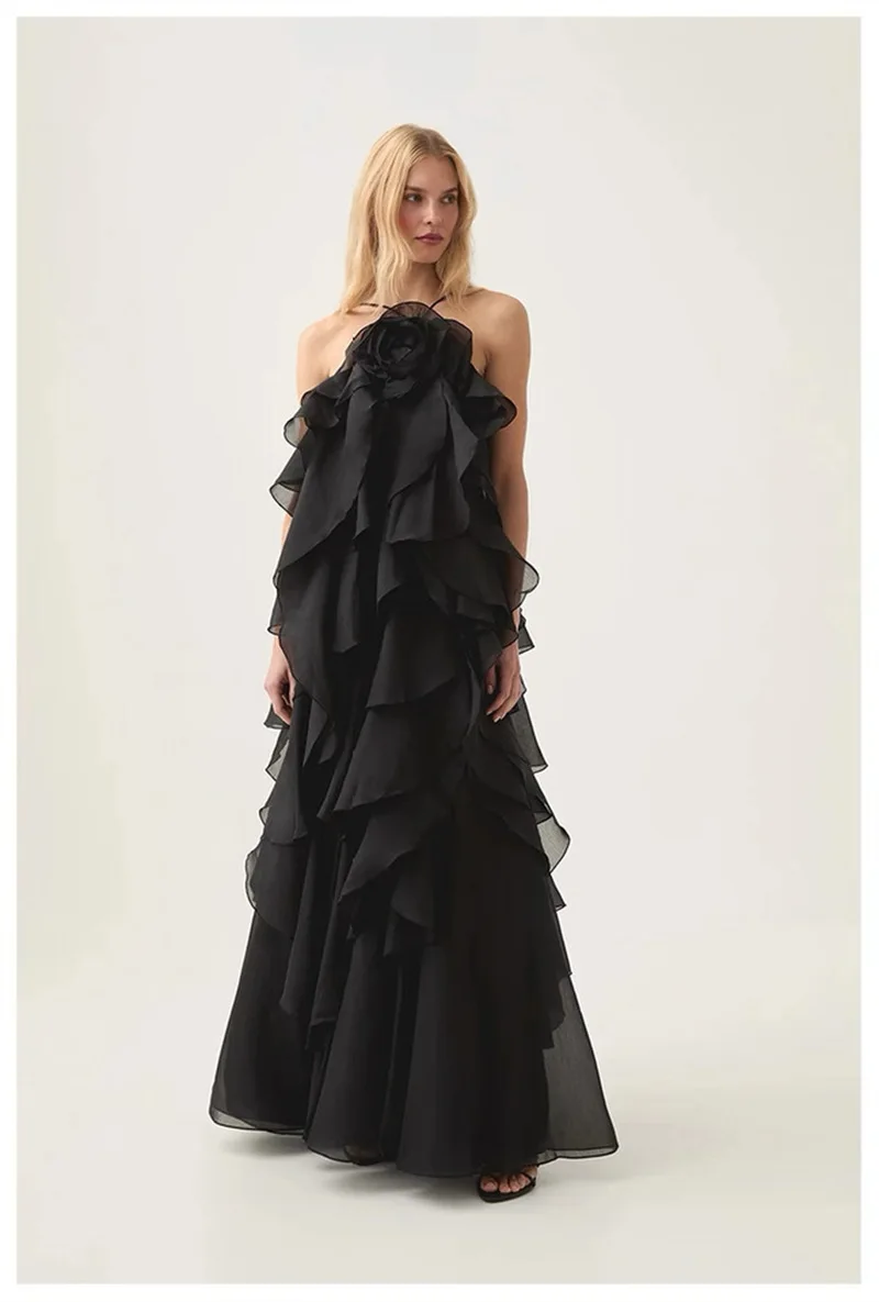 This new Australian boutique brand dress features a sexy hanging neck design with a 3D flower decoration, creating an elegant and stylish look.