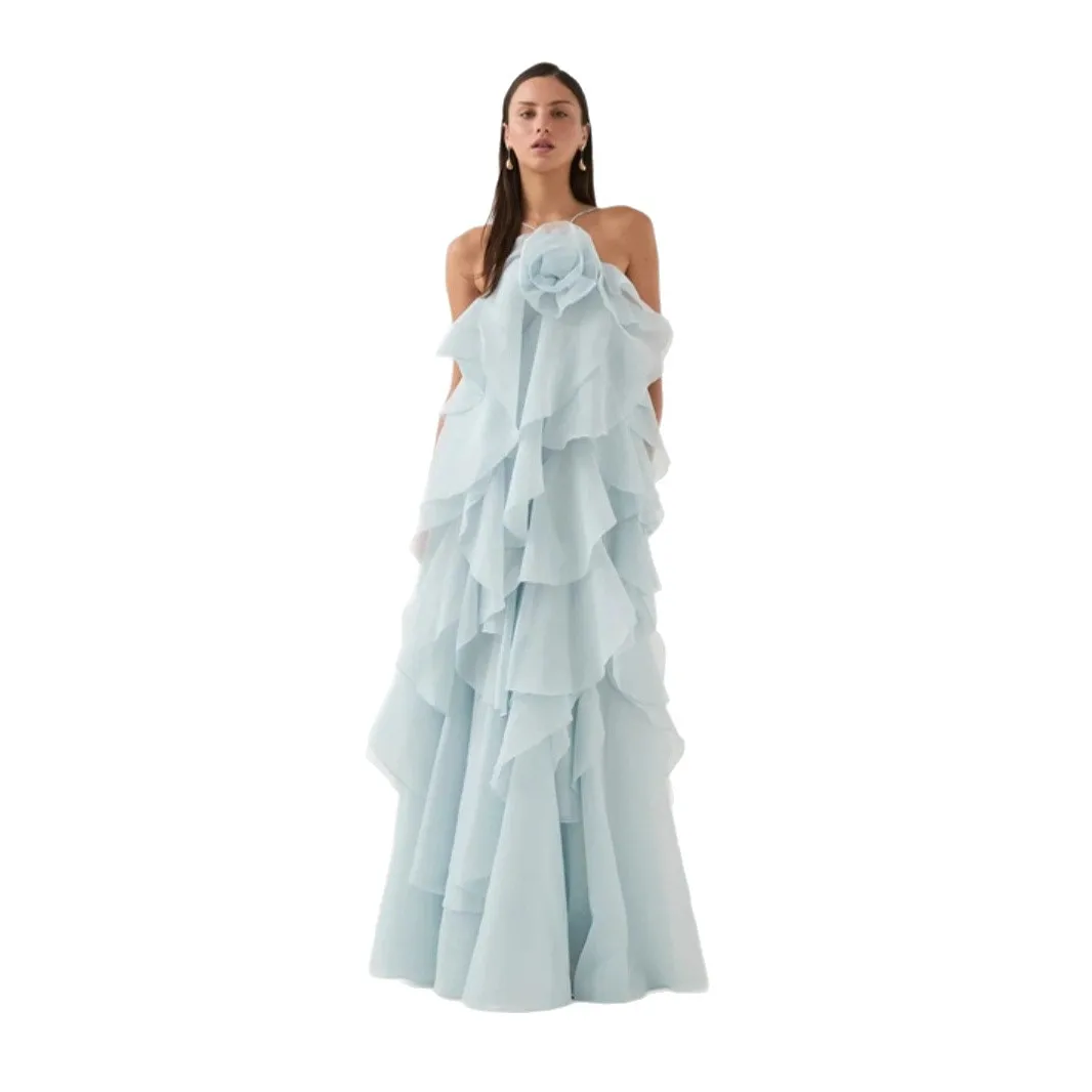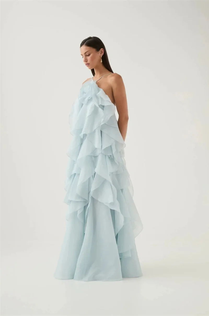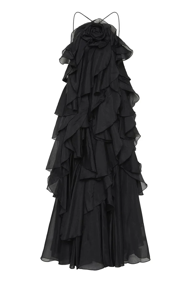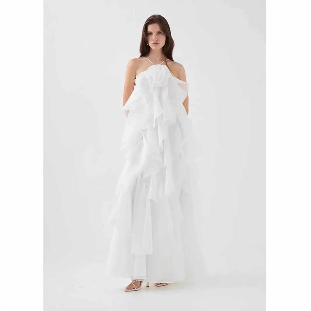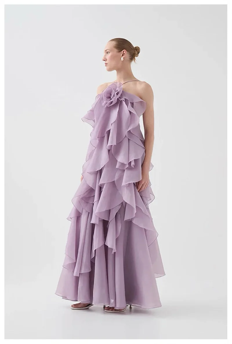 This new Australian boutique brand dress features a sexy hanging neck design with a 3D flower decoration, creating an elegant and stylish look.