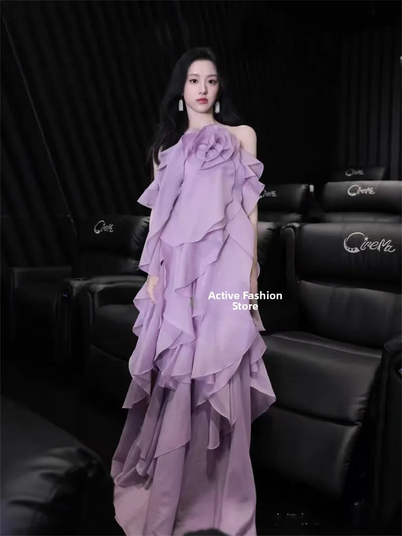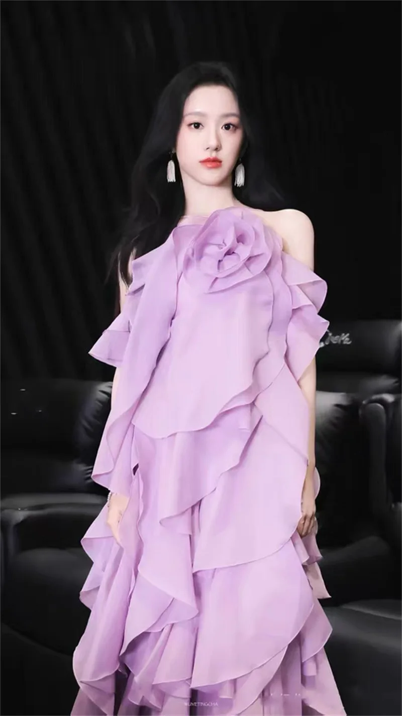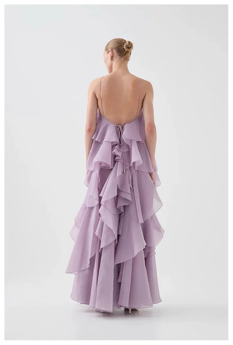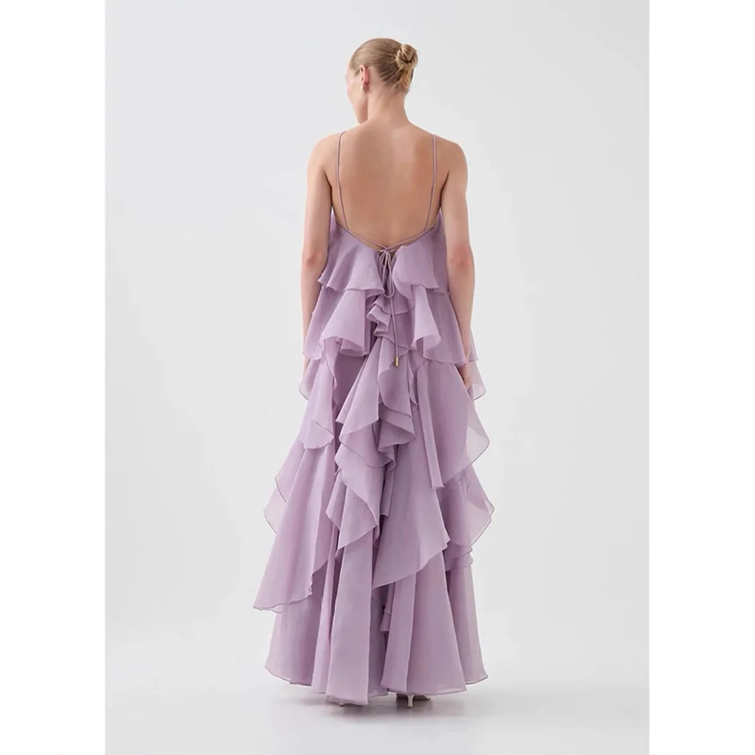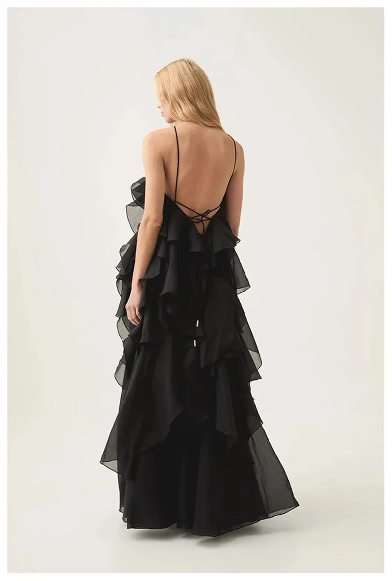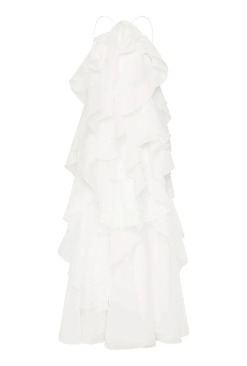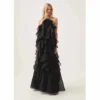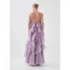 The distinctive flounce detail adds a touch of whimsy and femininity to the dress, making it stand out in any crowd.