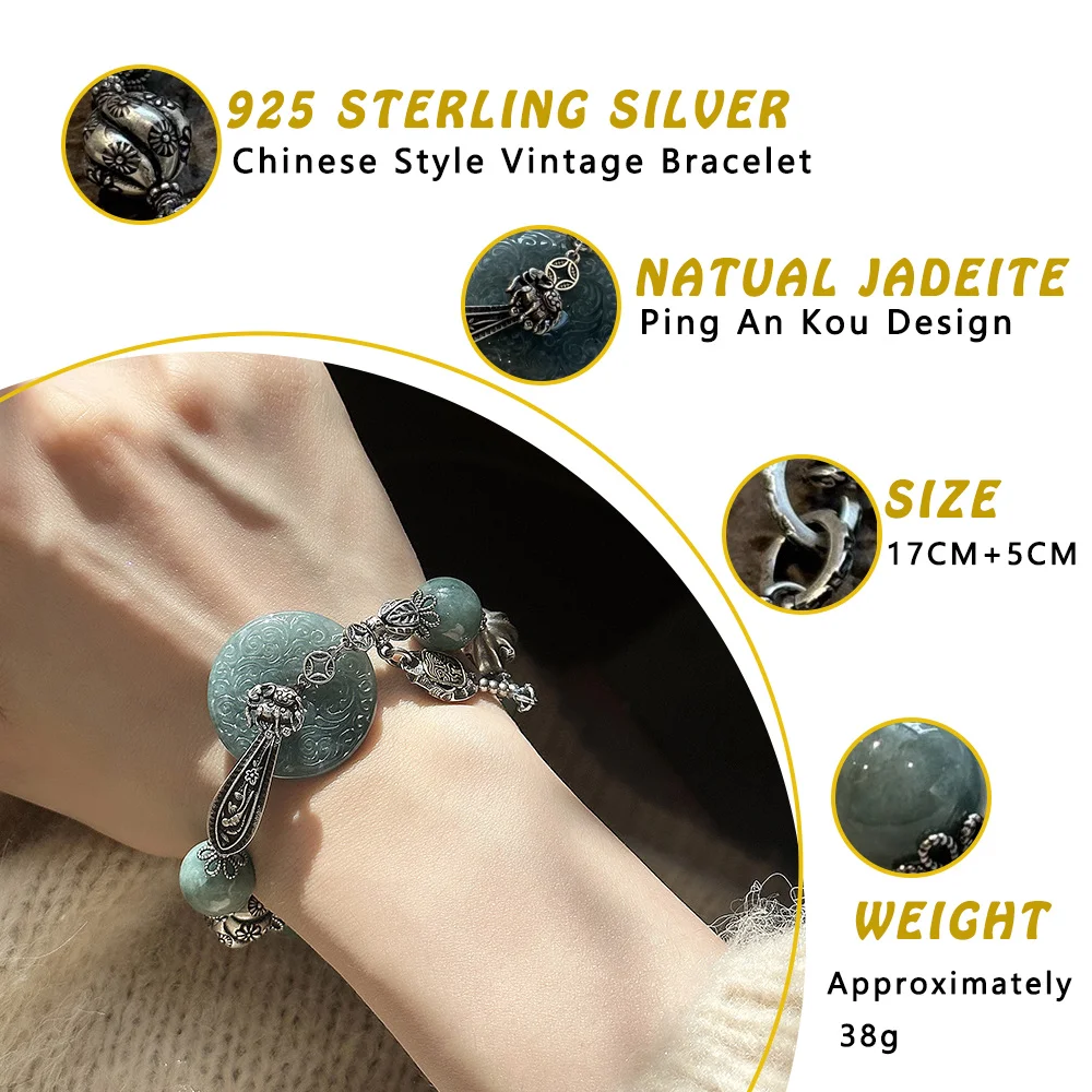 【Item Type】: 925 Sterling Silver Emerald Peace Buckle Beads Bracelet