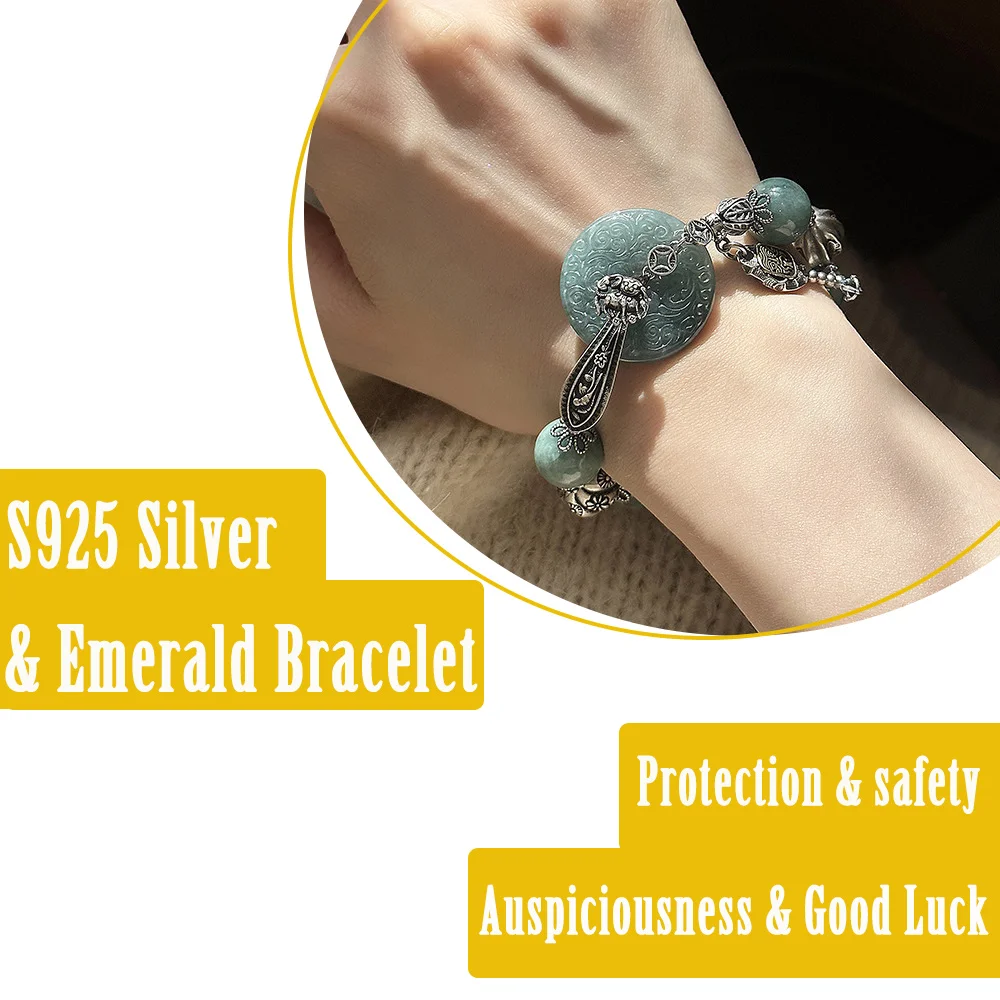 - Type: 925 Sterling Silver Emerald Peace Buckle Beads Bracelet