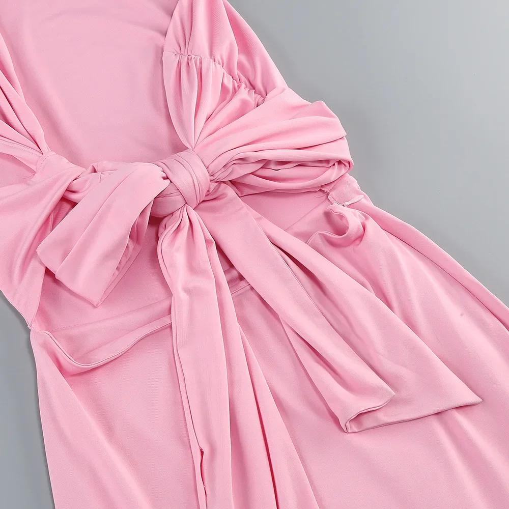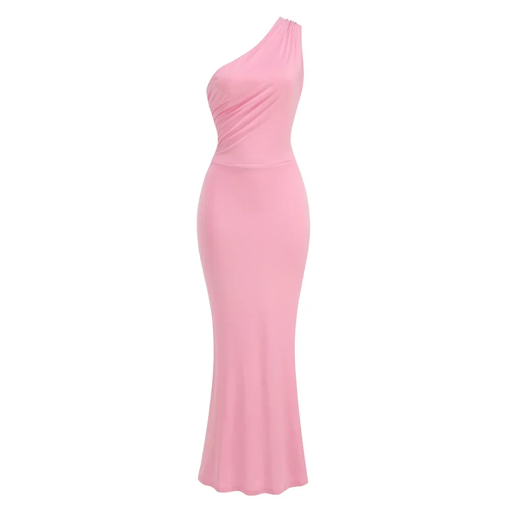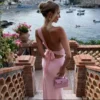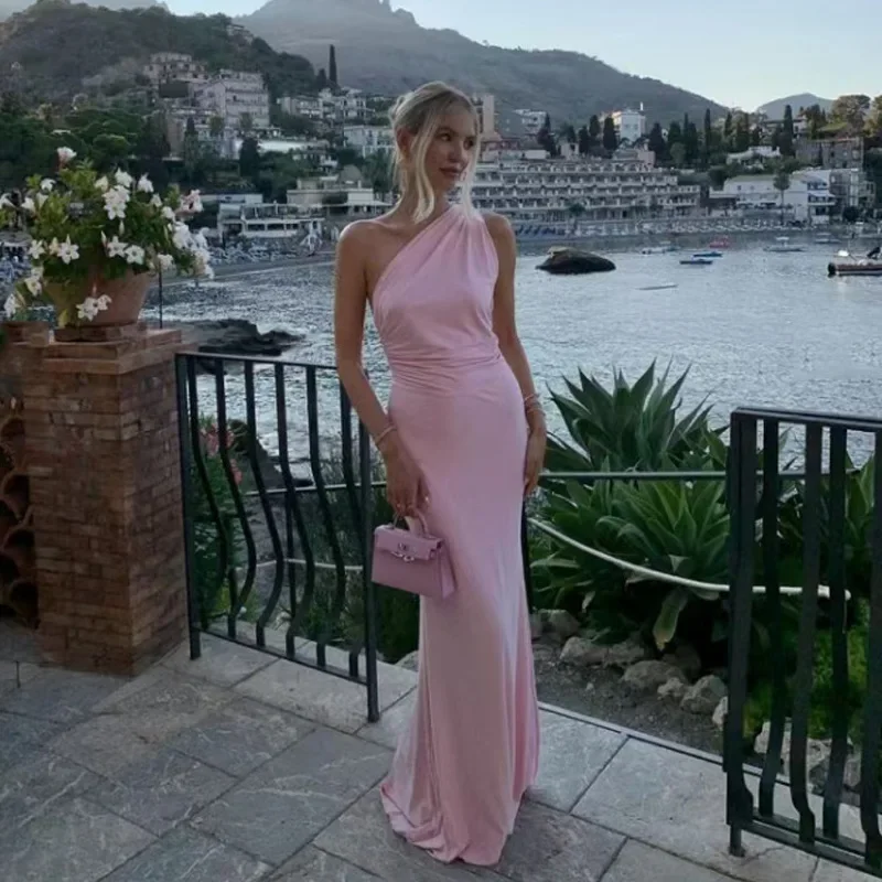 New Cross-Border Sexy Pink Off-Shoulder Backless Strap French Gown Long Dress Slims You Smooth Your Silhouette Tail Wiggy Dress