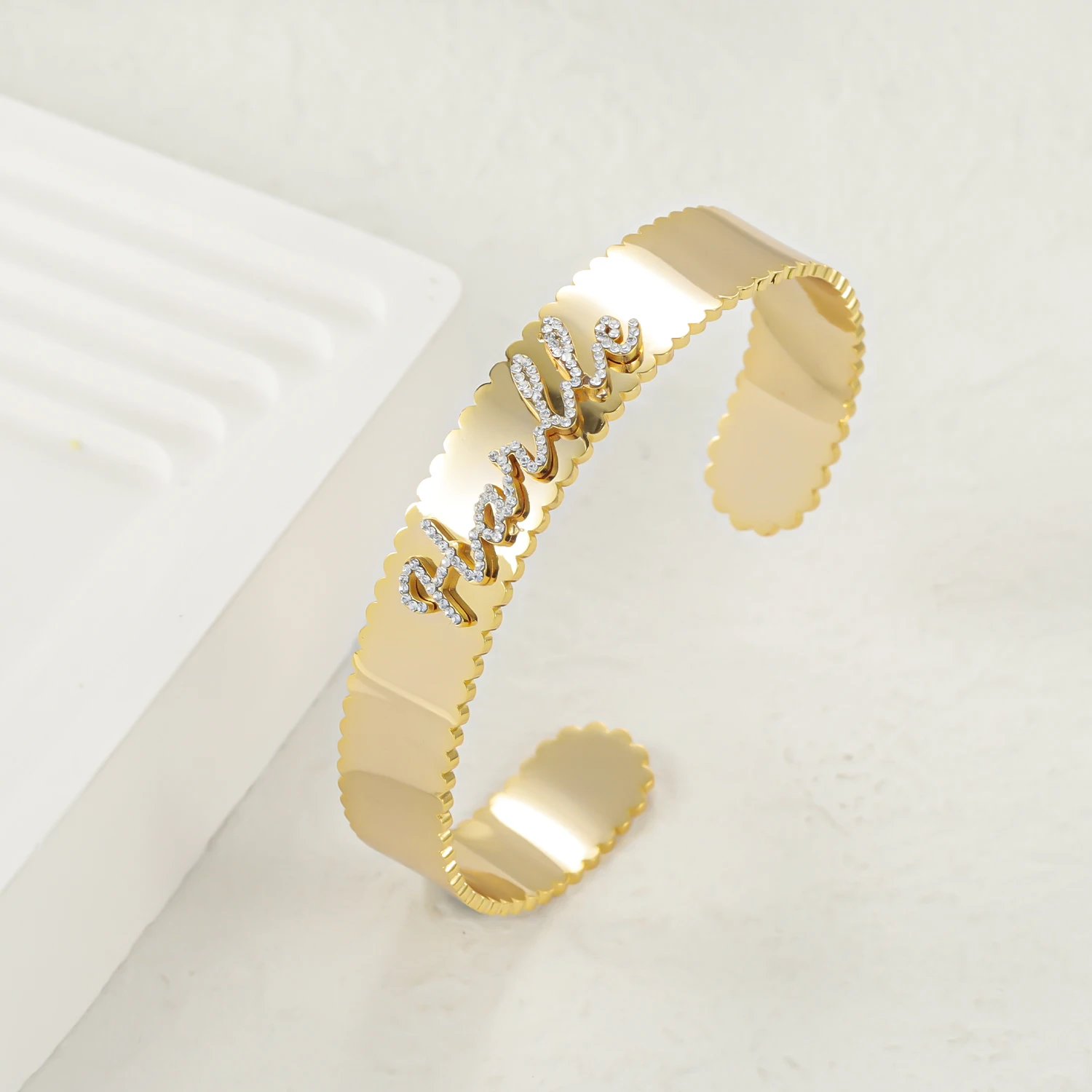 Personalizing your diamond name opening bracelet is a great way to celebrate a special occasion or create unique jewelry that reflects your personality and style. The combination of personalized engraving, intricate diamond accents and choice of precious metals make it a striking and sentimental accessory that will be treasured for years to come. Work closely with a skilled jeweler or jewelry designer to bring your vision to life and create a truly one-of-a-kind bracelet.