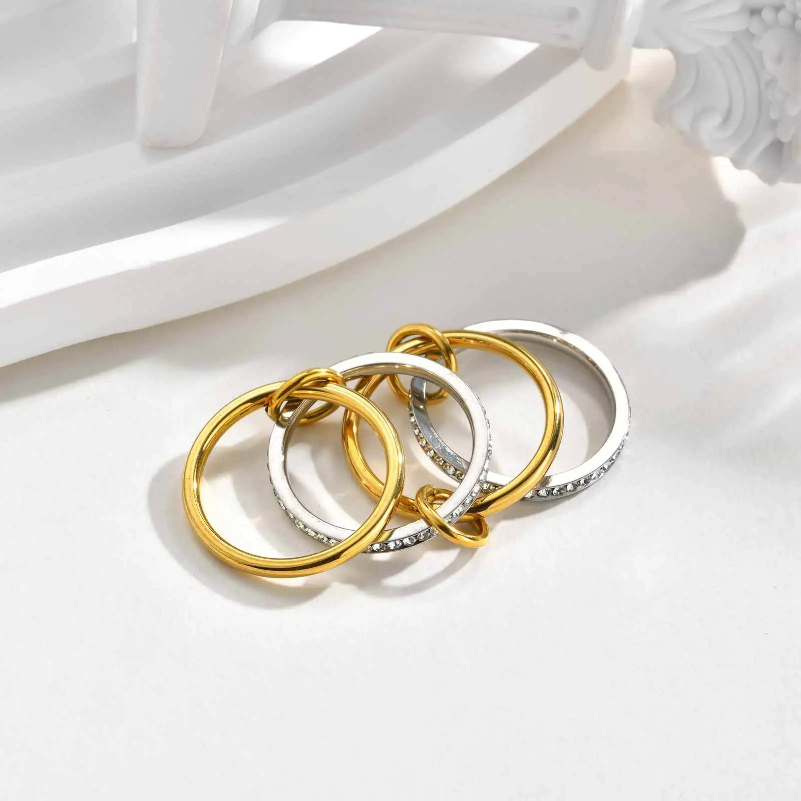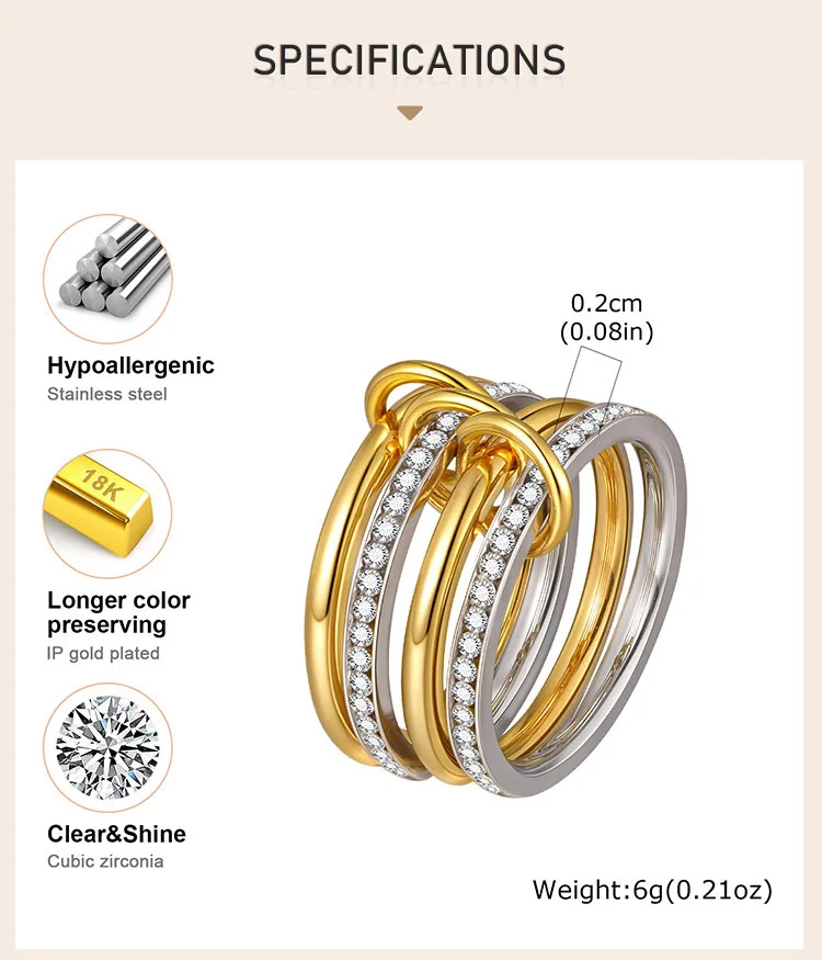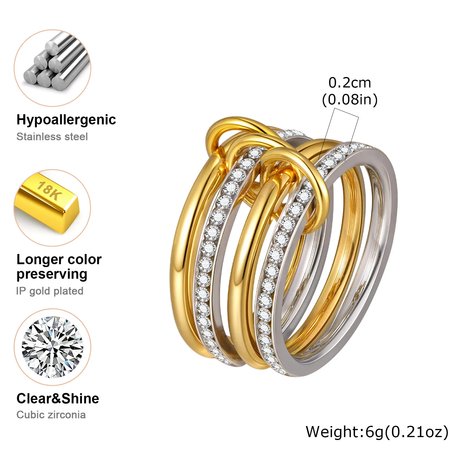 Stackable Rings for Women, 18k Gold Plate Interlocked Multi Ring Set Dainty Pave CZ Two-toned Mixed Metals Stacking Jewelry