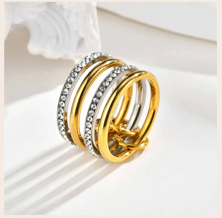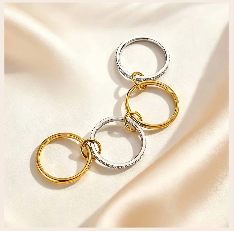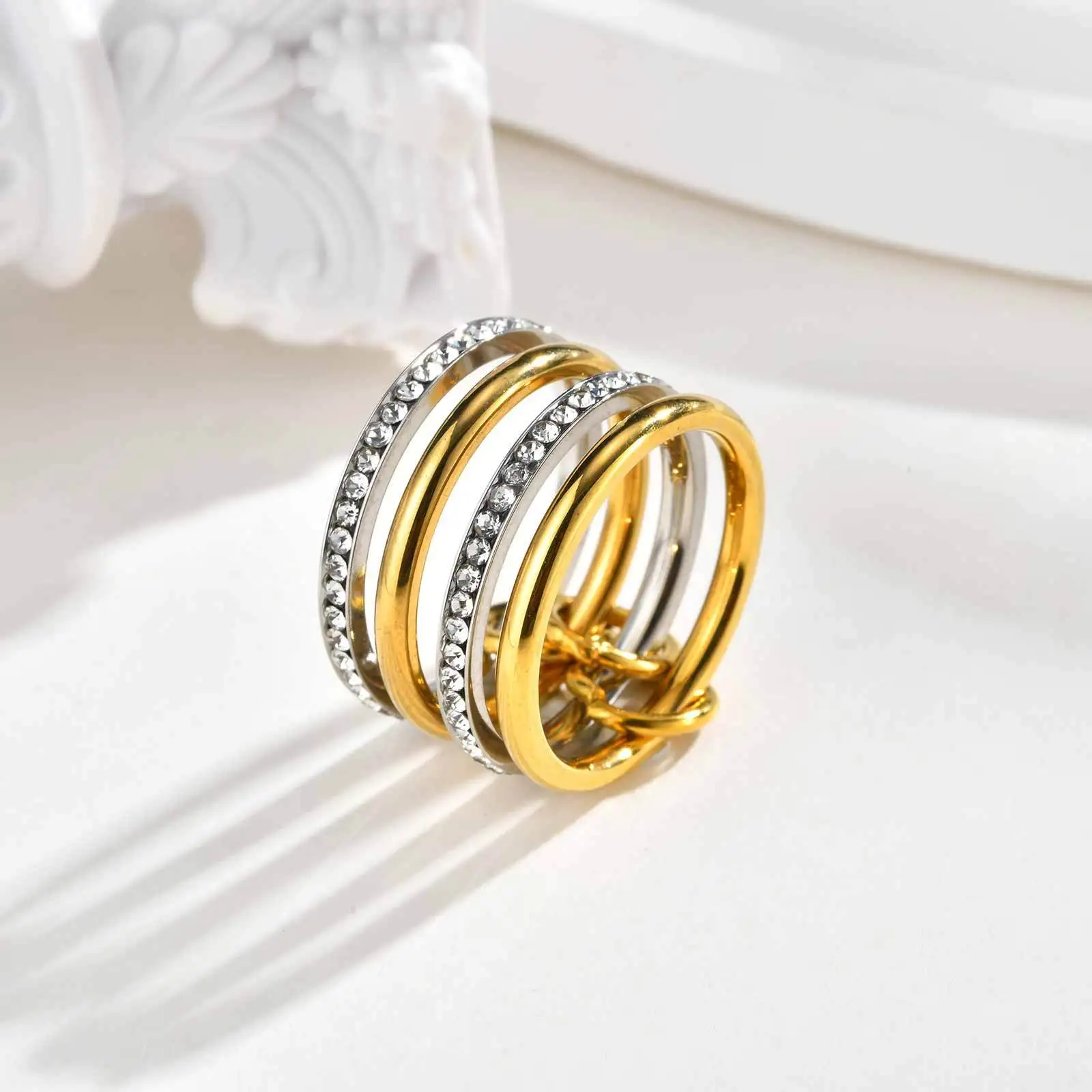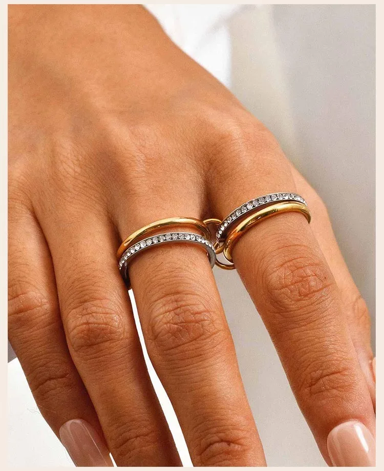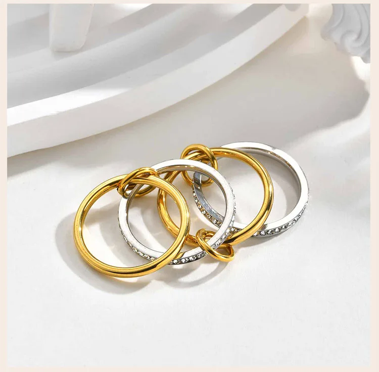 Stackable Rings for Women, 18k Gold Plate Interlocked Multi Ring Set Dainty Pave CZ Two-toned Mixed Metals Stacking Jewelry