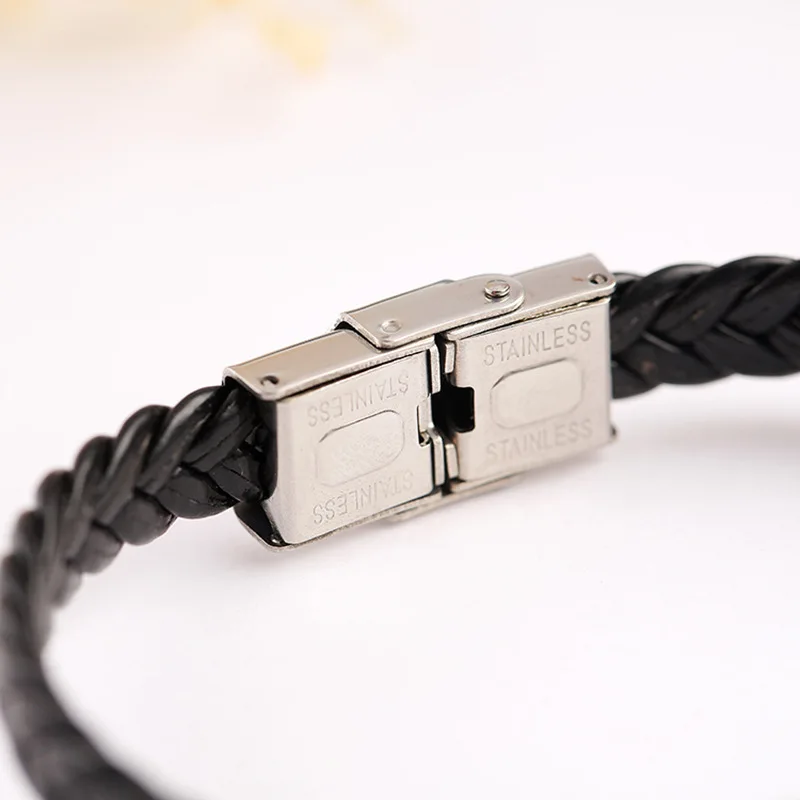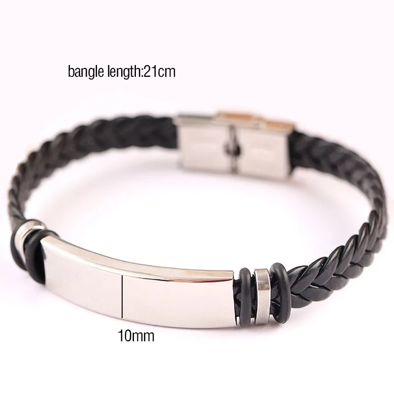 Stainless Steel Blank ID Tags Leather Bangles For Engrave Personalized Leather Braid Bracelet With Metal Plate Wholesale 50pcs
