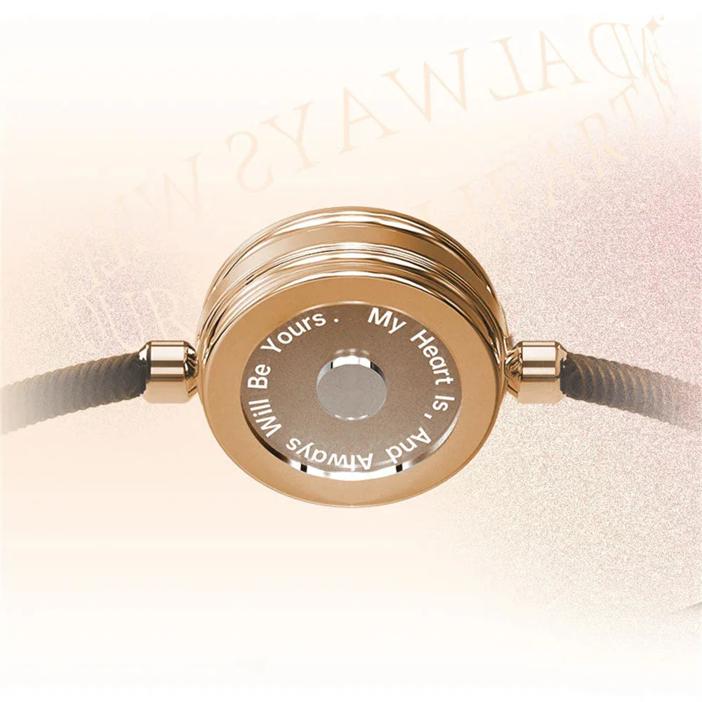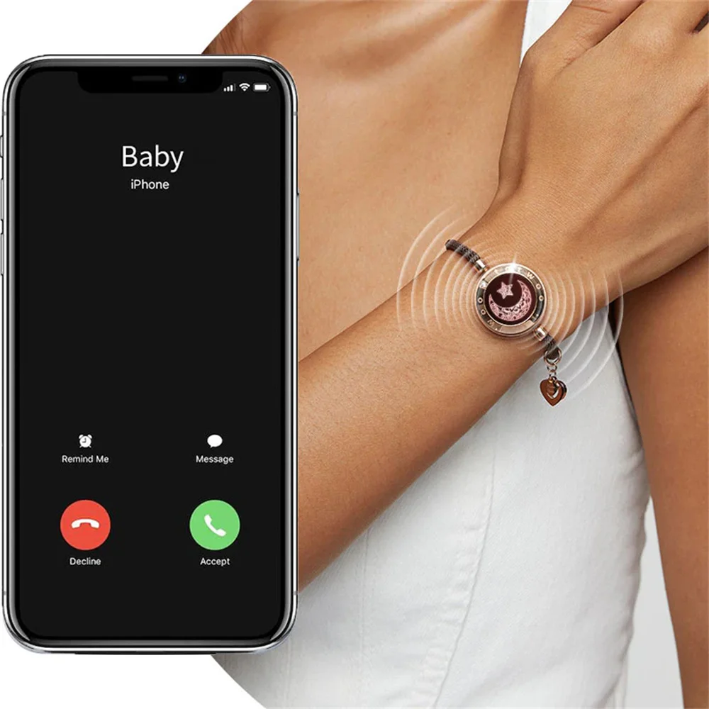 With just a simple touch, your partner's bracelet will light up and vibrate, no matter the distance. Each touch means "I am thinking of you".